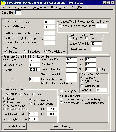 Fracture - (Level 1A, 2A, 2B, 3A & 3B) assessments for surface, embedded and through thickness flaws.