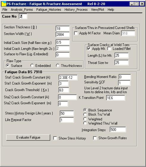 Fatigue - Crack growth fatigue predictions for surface, embedded and through thickness flaws using the recommended fracture mechanics principles of BS7910:2005.