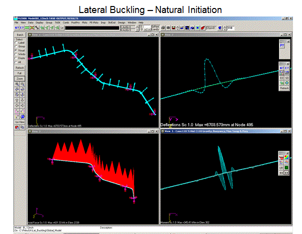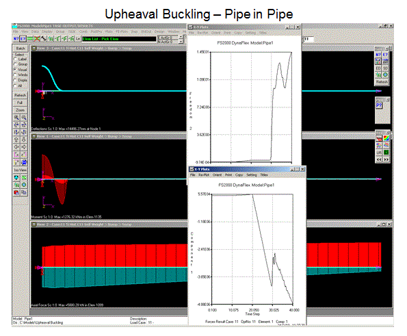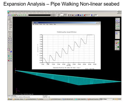 The non-linear nature of ground support interaction of pipeline is well suited for solution using the non-linear analysis capability of FS2000. Pipeline models are not a special feature of FS2000 they are just normal models which require non-linear solution. The solutions can include the effects of plasticity using various plasticity models .